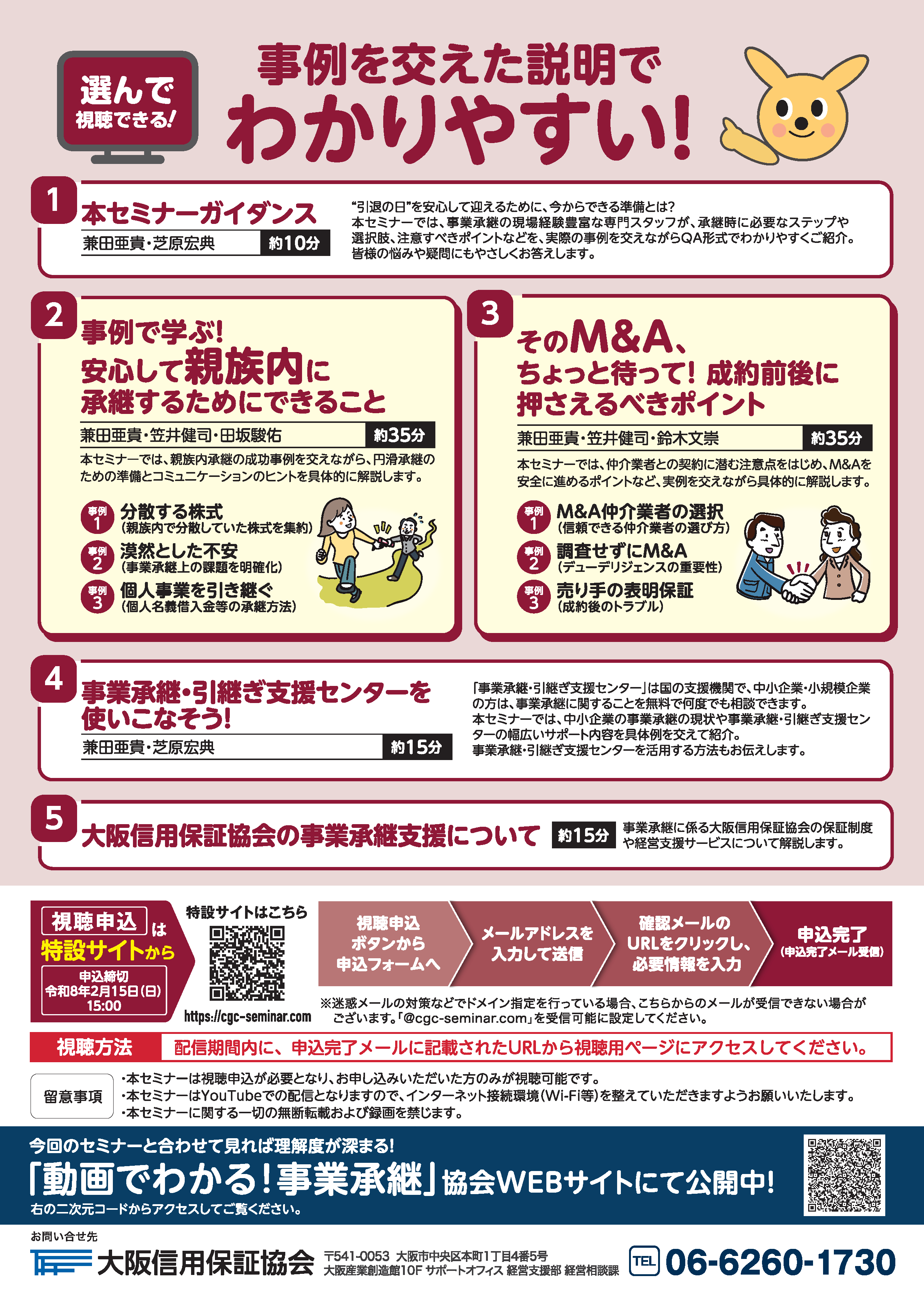 事業承継の第一歩を踏み出すきっかけとして、ぜひご視聴ください。