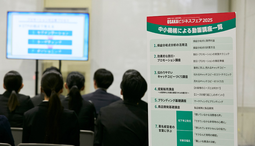 また、中小企業基盤整備機構による動画講座も常時放映し、経営に役立つ情報を発信しました。